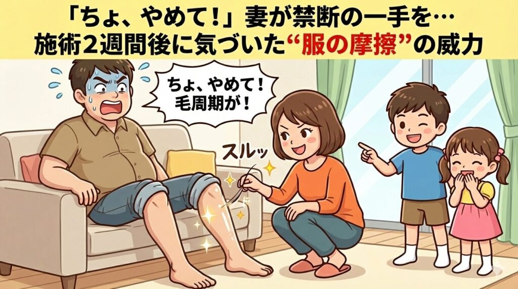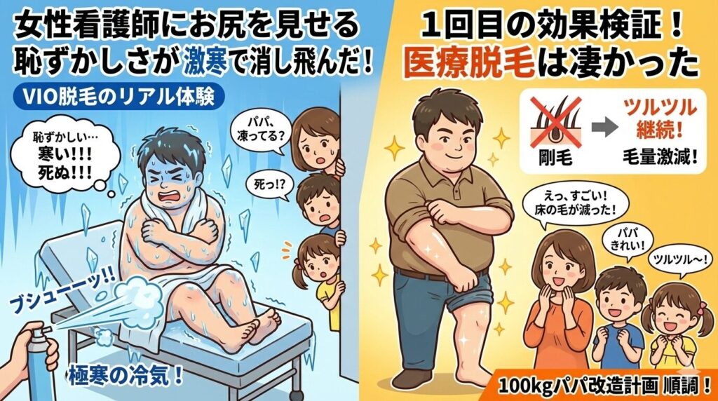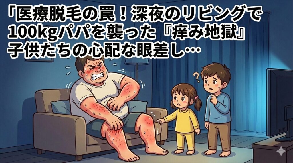 「一度かいたら止まらない…」医療脱毛の夜、100kgパパを襲った痒みの無限ループと、ママに怒られた保湿の話