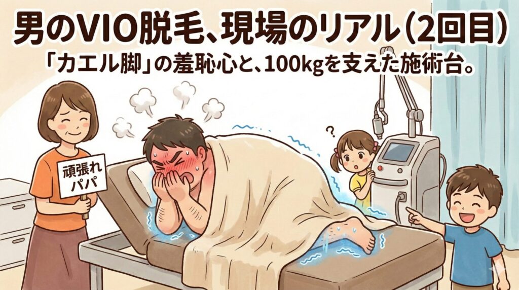 男のVIO脱毛、現場のリアル(2回目)。「カエル脚」の羞恥心と、100kgの巨体を支えた施術台の話